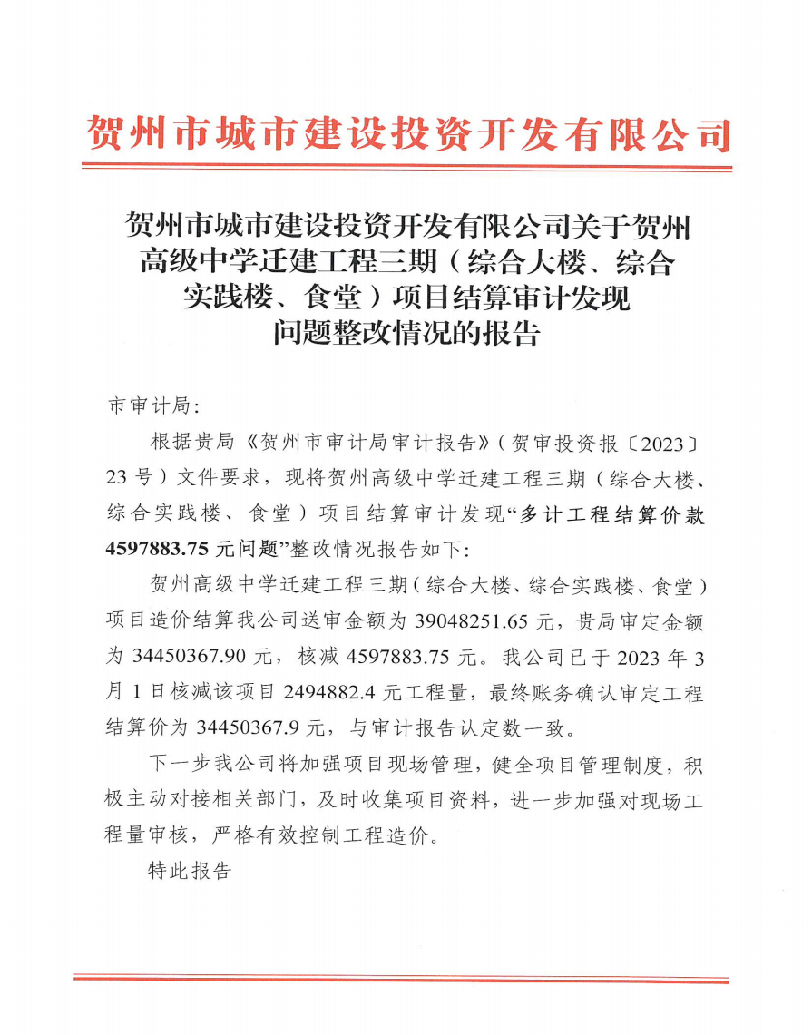 上一篇:賀州城投集團原董事長、總經理蒙金昌同志經濟責任審計發現問題整改情況公告