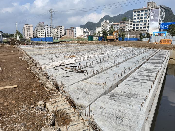 3月9日,賀州市生態新城永康路育才河橋開展梁板架設施工。據了解,該橋共架設橋梁84片,預計本月11日可...